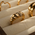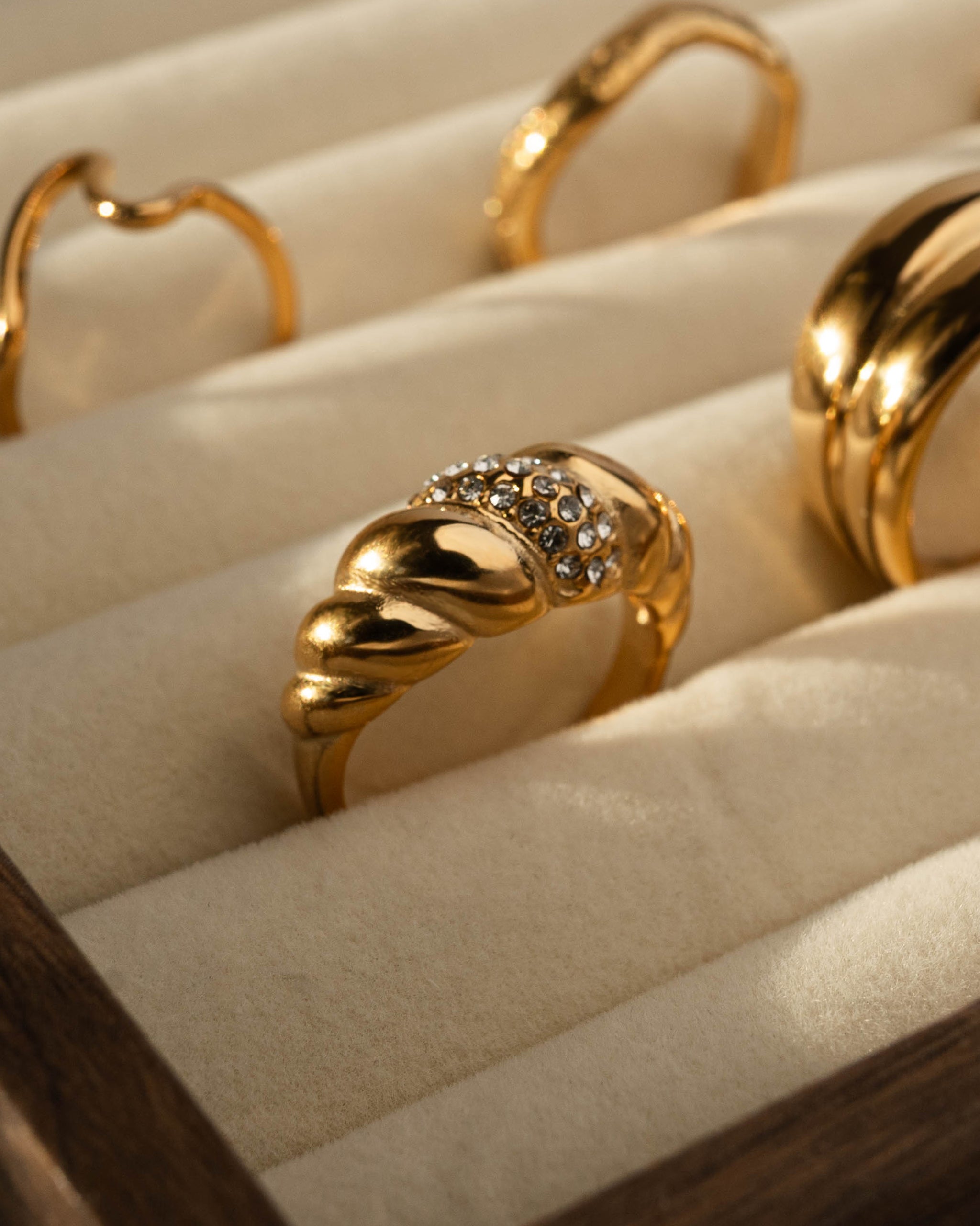 This ring is made to elevate your everyday — bold enough to stand out, timeless enough to wear forever. Swim, shower, and take on the world without a second thought. Crafted from solid stainless steel and finished with a rich 18K gold PVD coating, they're 100% waterproof and built to shine, day after day.