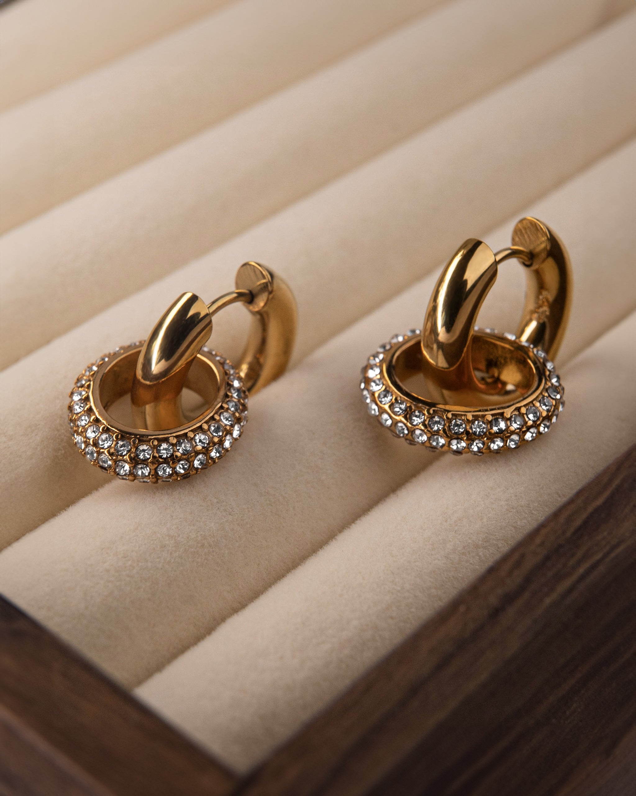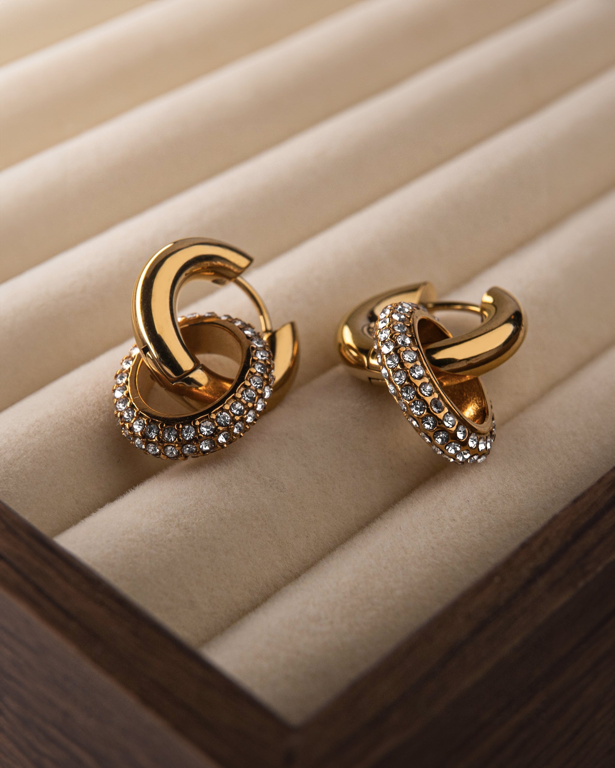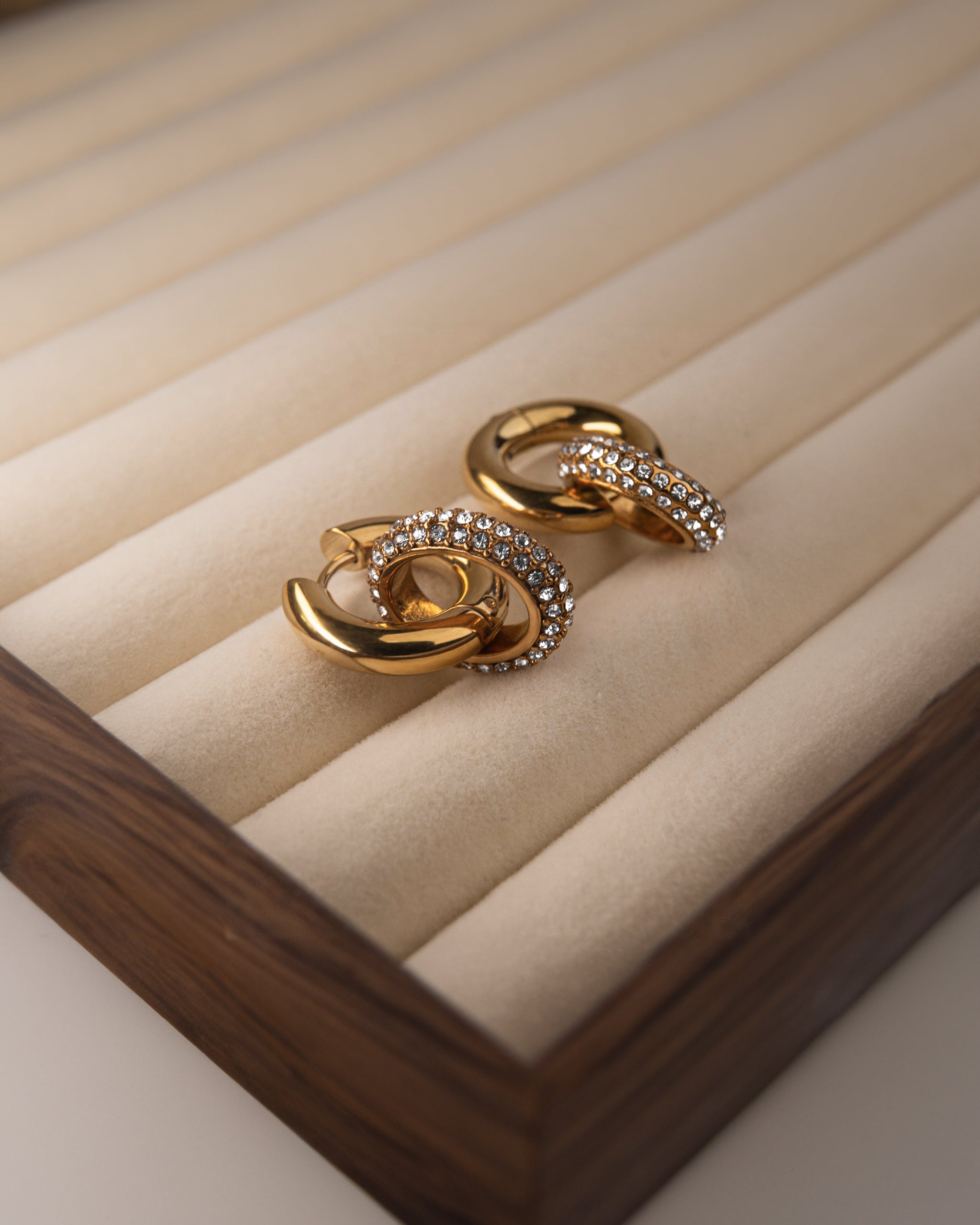 Disse øredobbene i 18K gullbelagt rustfritt stål kombinerer elegant design med solid holdbarhet. Lette, komfortable og vannbestandige – perfekte for både hverdag og fest. Den varme gulltonen gir et raffinert uttrykk uten å rope etter oppmerksomhet. Et par du kommer til å bruke igjen og igjen.